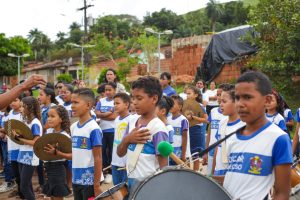 O distrito de Santo André também vivenciou no dia de hoje (02), o civismo e patriotismo com o hasteamento das bandeiras e apresentação da banda da escola Dr. Francisco Romano de Brito.
