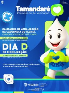 A Prefeitura de Tamandaré, por meio da Secretaria Municipal de Saúde, informa o início da Campanha de Atualização da Caderneta de Vacinação de crianças e adolescentes de até 15 anos de idade. 💉