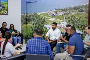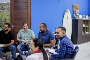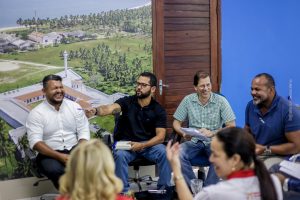 O encontro contou com a presença dos secretários Márcio Manuel (Agricultura), Josafá (Administração e Finanças) e Cícero Santos (Turismo), além do assessor Gustavo Pessoa, do chefe de gabinete Bruno Sampaio e da agente administrativa da Secretaria de Turismo, Fabiana.